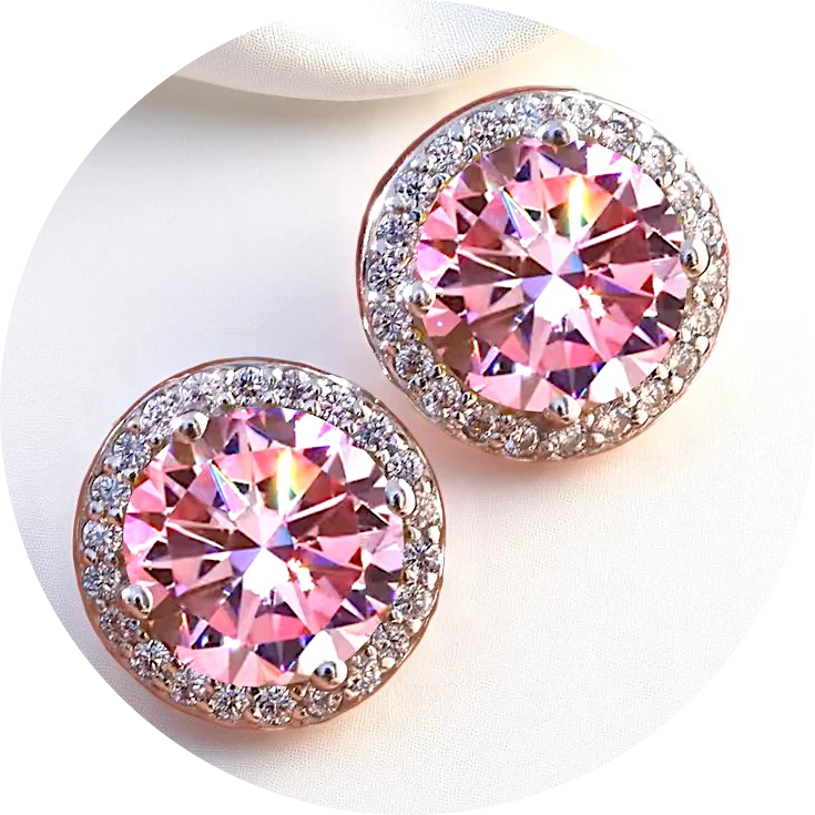 Elegant Ella Halo Stud Earrings - 2 Carat Moissanite (Pink) - 2 x 1CT Each