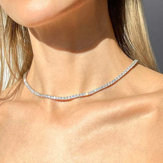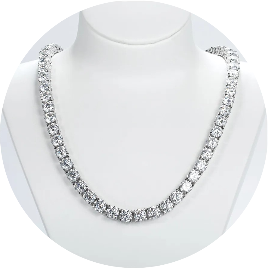 Enhance your neckline with our stunning collection of diamond and moissanite tennis...