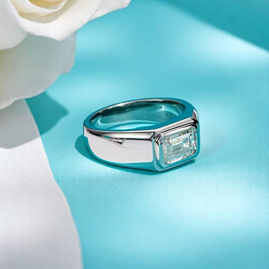 Emerald Cut 2 Carat Modern Moissanite Ring [Rhodium Plated] - Unisex
