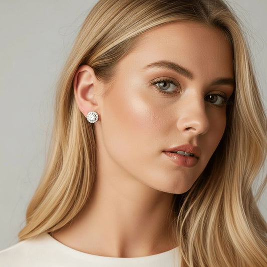 Chic Halo Stud Earrings - Moissanite - White Gold/Yellow Gold/Rose Gold [2x 1CT]