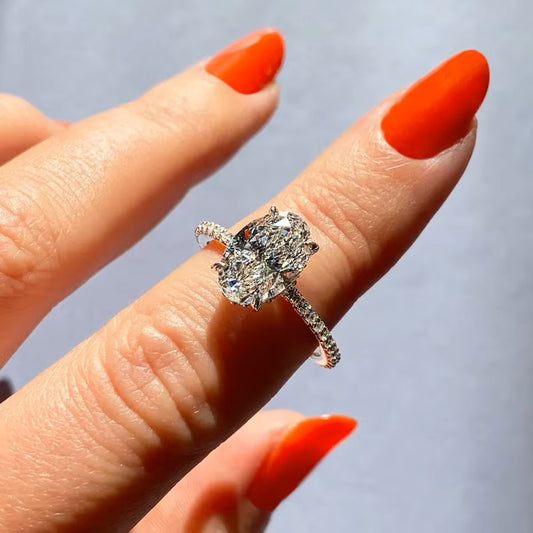 Nora Grace 2 Carat Oval Cut Pave Ring - Zirconia Crystals/Moissanite
