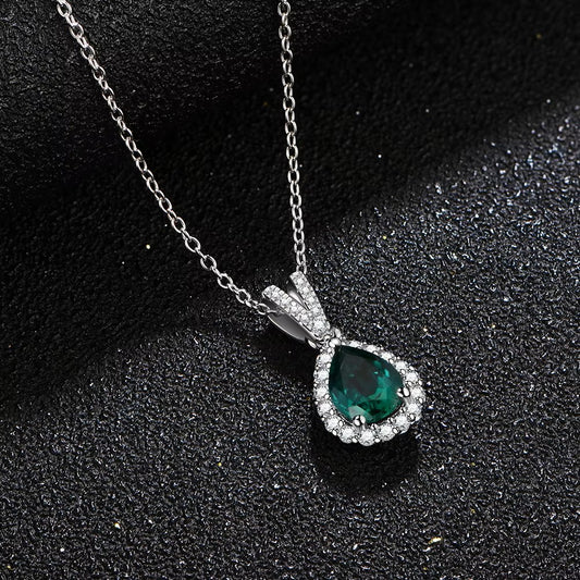 Elegant Pear Cut Emerald Halo Pendant | 1 Carat | Sterling Silver (Rhodium Plated)