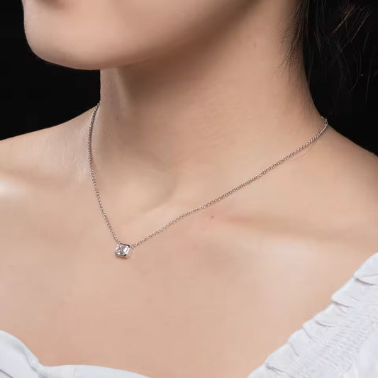 Elegant Heart Pendant with Chain - 1 Carat Moissanite (Rhodium Plated)