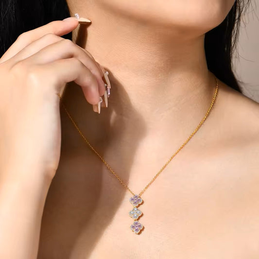 Elegant Natalie 5 Carat Halo Pendant | Moissanite | Dark Green [Rhodium Plated]