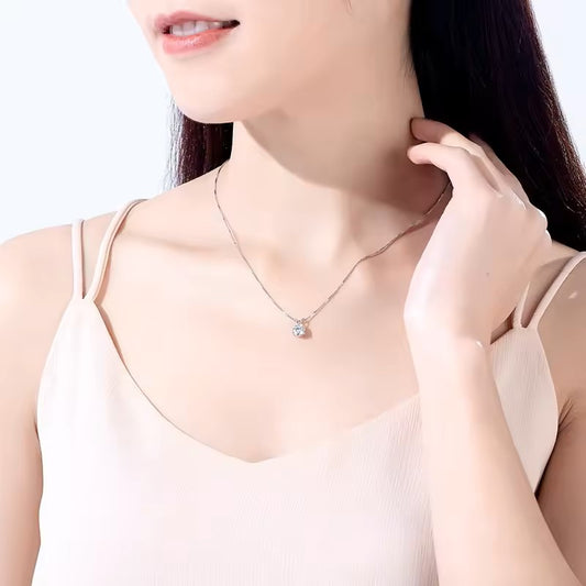 Elegant 1 Carat Pendant with Chain - 1CT Moissanite (Rhodium Plated)