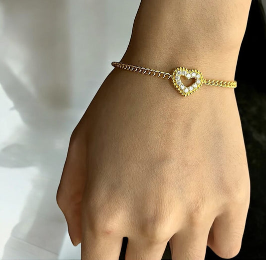 Elegant Heart Bracelet - Gold/White Gold - Moissanite
