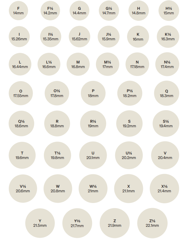 3. Then, refer to our Ring Size Chart below to match your measurement to the correct ring size.