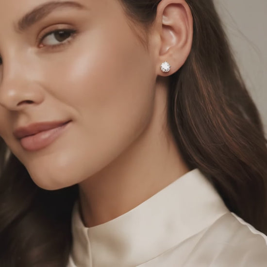 10K White Gold Moissanite Stud Earrings with Sterling Silver Setting | Sparkling Round Cut Design