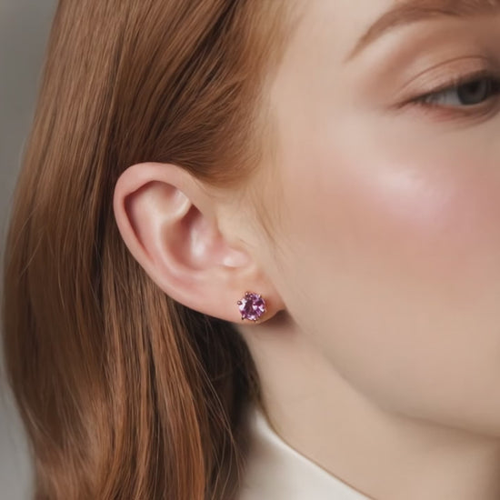 Aura Six-Prong Elegant Stud Earrings - White Gold/Rose Gold/Yellow Gold [Moissanite - Pink/Sea Green/ Black/Yellow Colours]