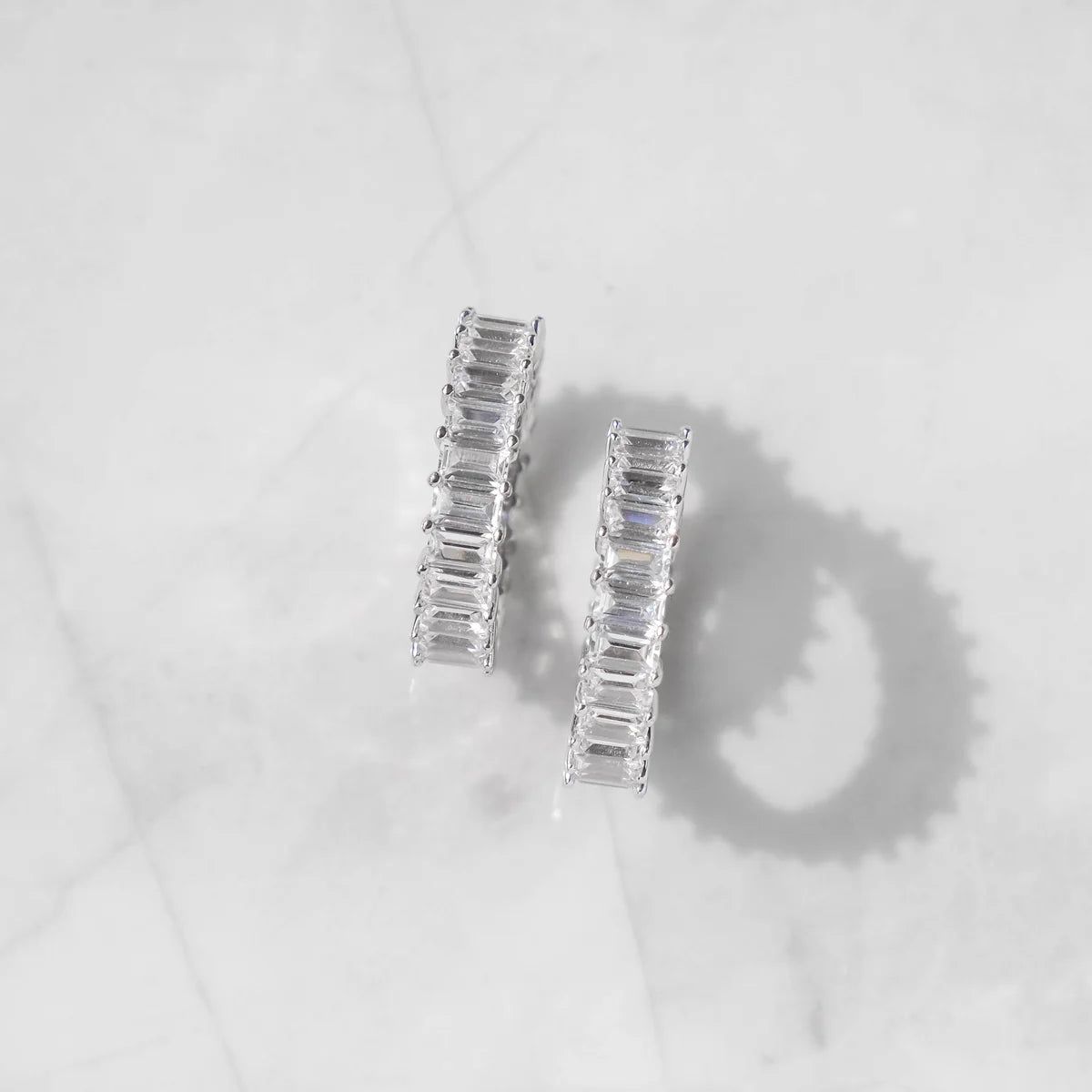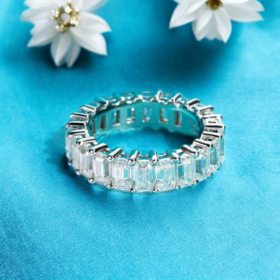 Aura Emerald Baguette Eternity Band ~ 8 Carat Weight- 5MM - Sterling Silver - Rhodium Plated - Moissanite