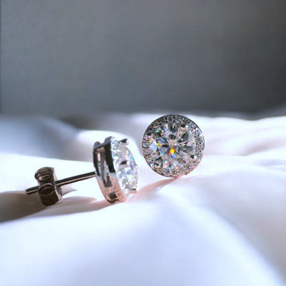Elegant Jordyn Halo Stud Earrings - 2 Carat Moissanite (2 x 1CT Each)