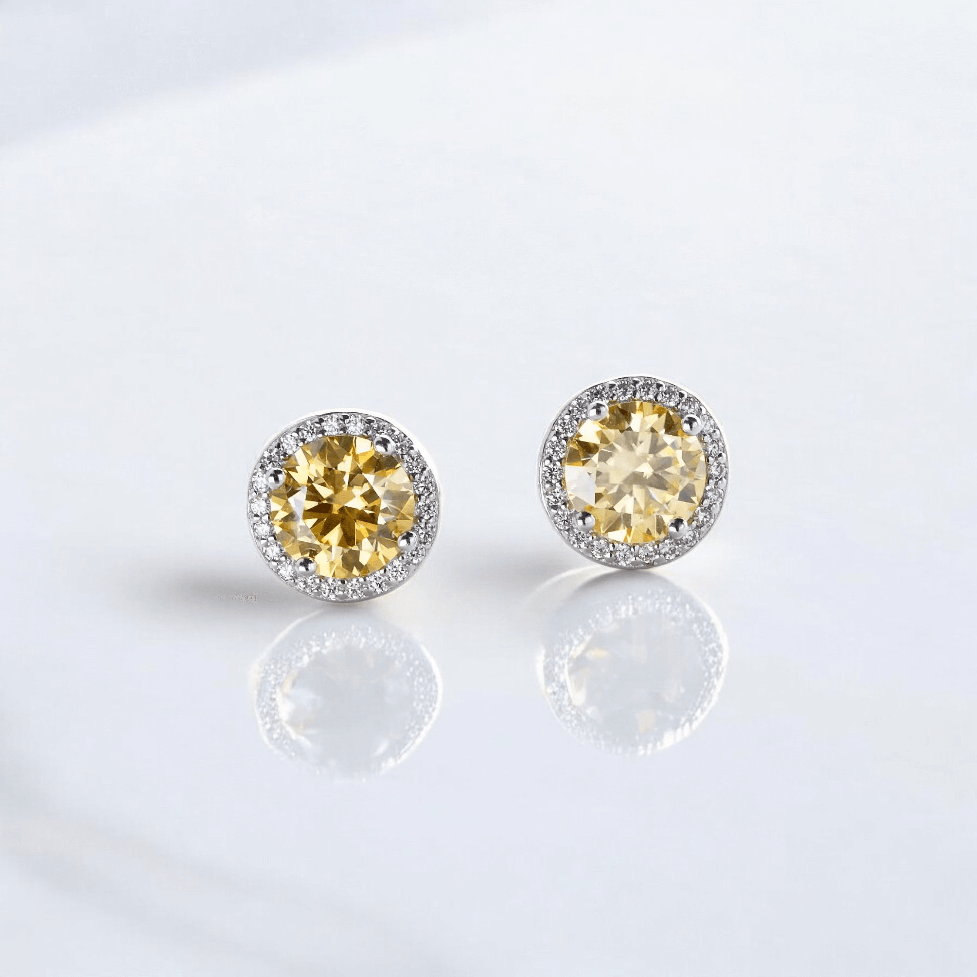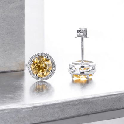 Elegant Halo Stud Earrings with Sparkling Yellow Moissanite