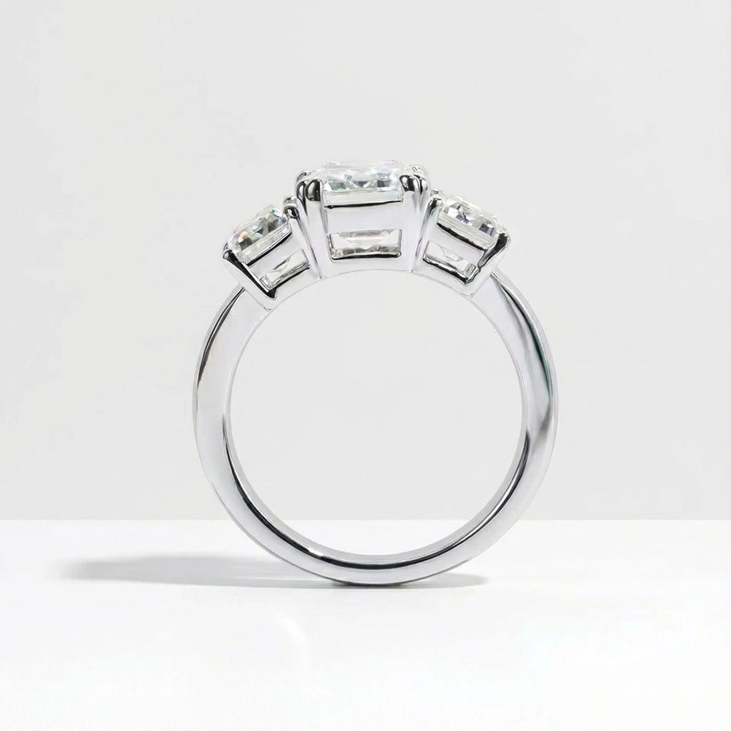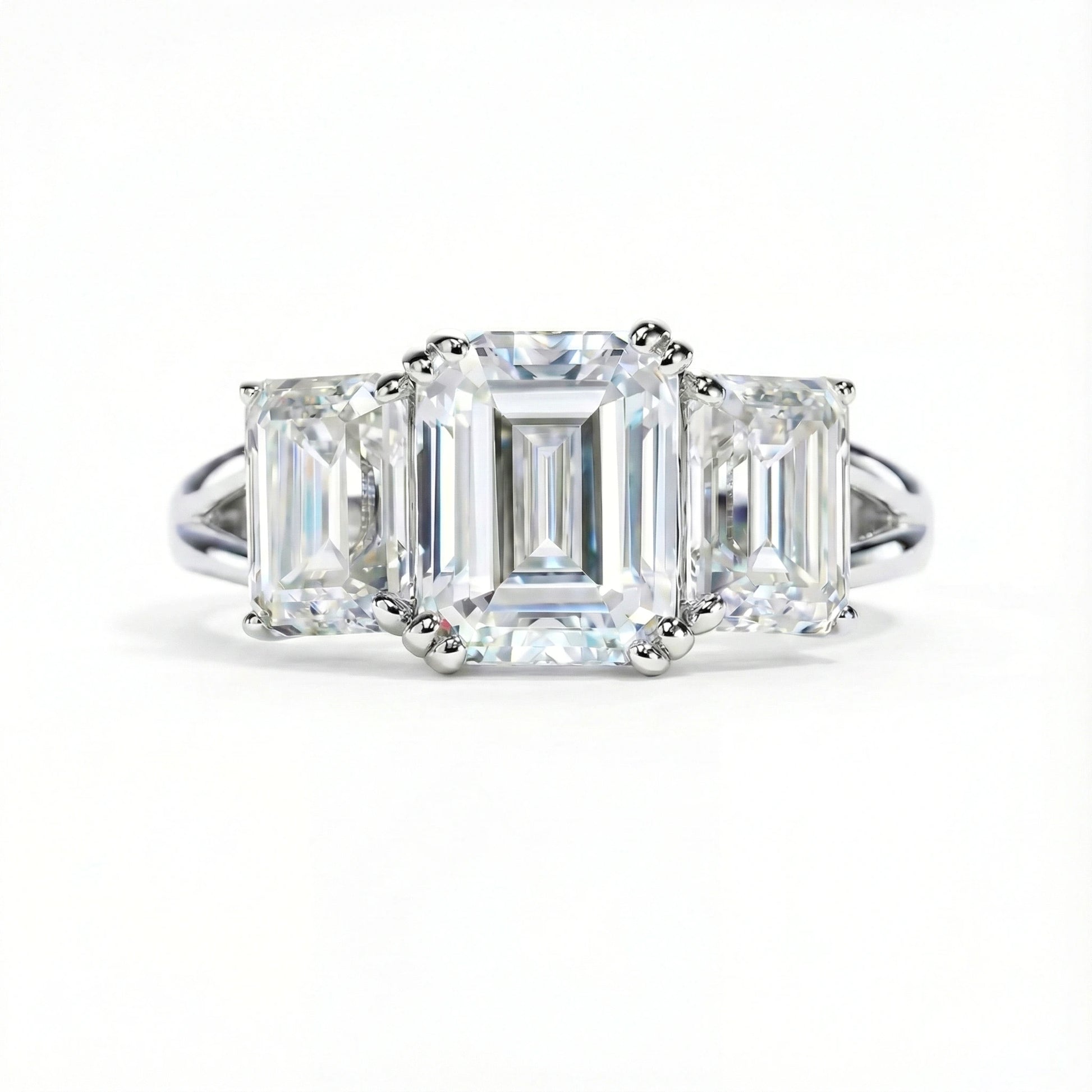 Emerald Cut 5 Carat Weight Moissanite Three-Stone Engagement Ring