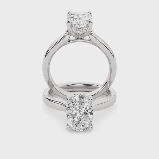 Emma Oval Solitaire with Hidden Halo - Cathedral Setting - White Gold