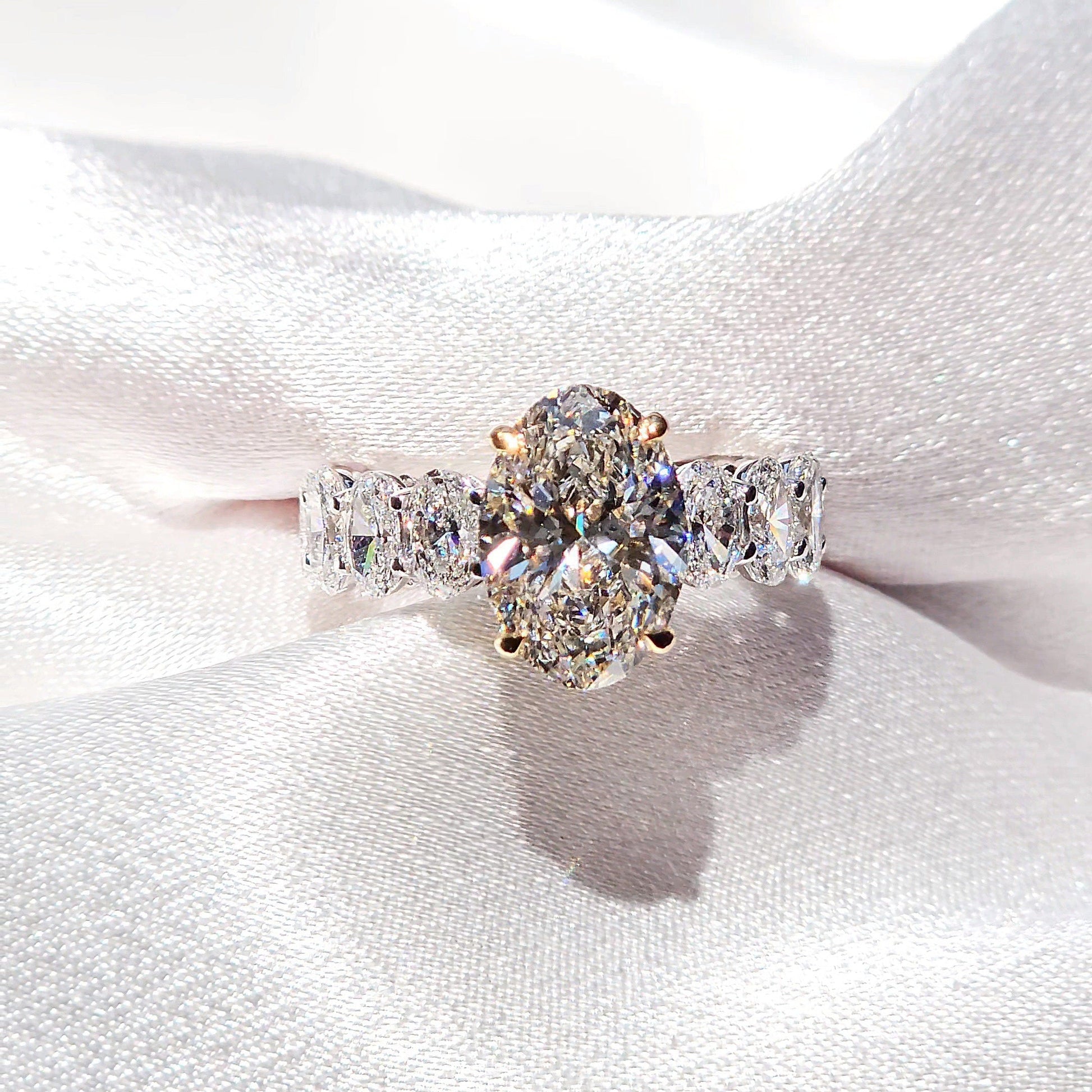 Eternal 3.5 Carat Oval Heiress Ring With Side Oval Diamonds - Two Tone