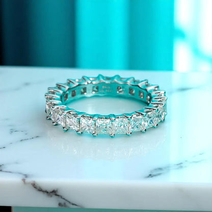 Luxury Princess Cut Eternity Band- White Gold - Moissanite/Lab Diamond (Rhodium Plated)