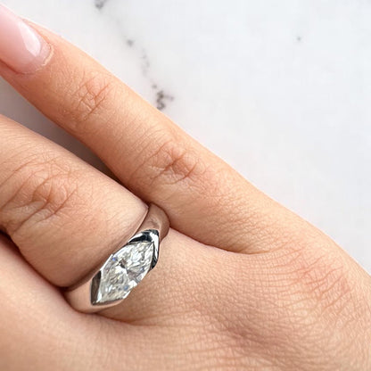 Marquise Cut Modern Moissanite Ring [Rhodium Plated] - Unisex
